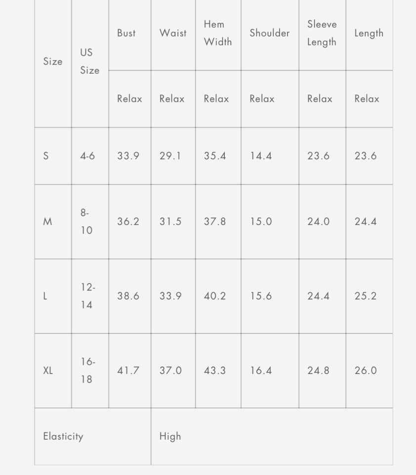 Size chart is listed for reference.