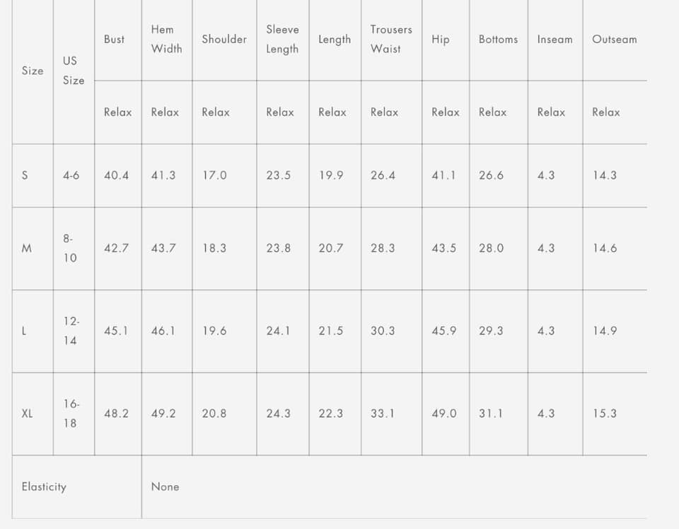 Size chart is listed for reference.